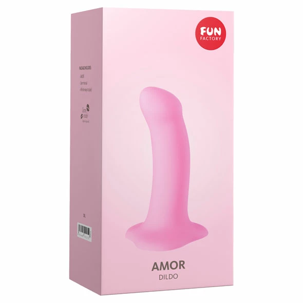AMOR has a length of 14,6 cm and diameter of 3,7 cm, making it the smallest dildo from FUN FACTORY. The simple color coordinates with a sleek design and the naturalistic shape of the tip, which targets the g-spot or p-spot, makes it the perfect toy. AMOR โ just like its name suggests โ spreads love and ecstasy. It is also versatile โ with a little water-based lubricant (TOYFLUID), it may be used vaginally or anally. AMOR adheres to smooth surfaces and can be placed in a harness. Made of 100% medical-grade silicone in Germany the AMOR promises fireworks solo or with a partner โ and all without a motor.